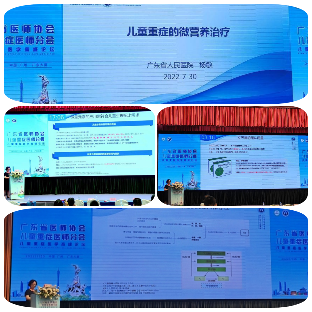 基于基层医疗单位对危重儿童营养素的添加,特别是“微量营养素”的添加观念尚浅。我司特邀请了中国医师协会儿科医师分会儿童消化学组组长、中华医学会消化病分会第10届委员会儿科协作组委员、广东省人民医院儿科行政主任杨敏教授带来“儿童重症的微营养治疗”的分享。