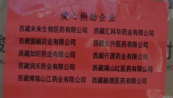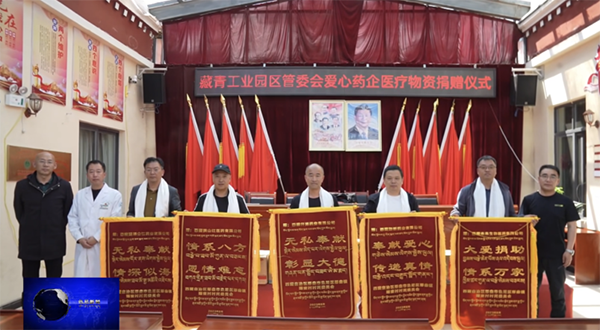 捐赠仪式上,色尼区副书记、驻村工作队总领队李庆军同志、格办(管委会)安监(质监、食药监)局局长隋树格同志等领导向此次爱心捐赠医疗物资的10家医药企业颁发了锦旗,牧民群众纷纷献上了洁白的哈达,表达了对爱心企业的深深的感恩之情。