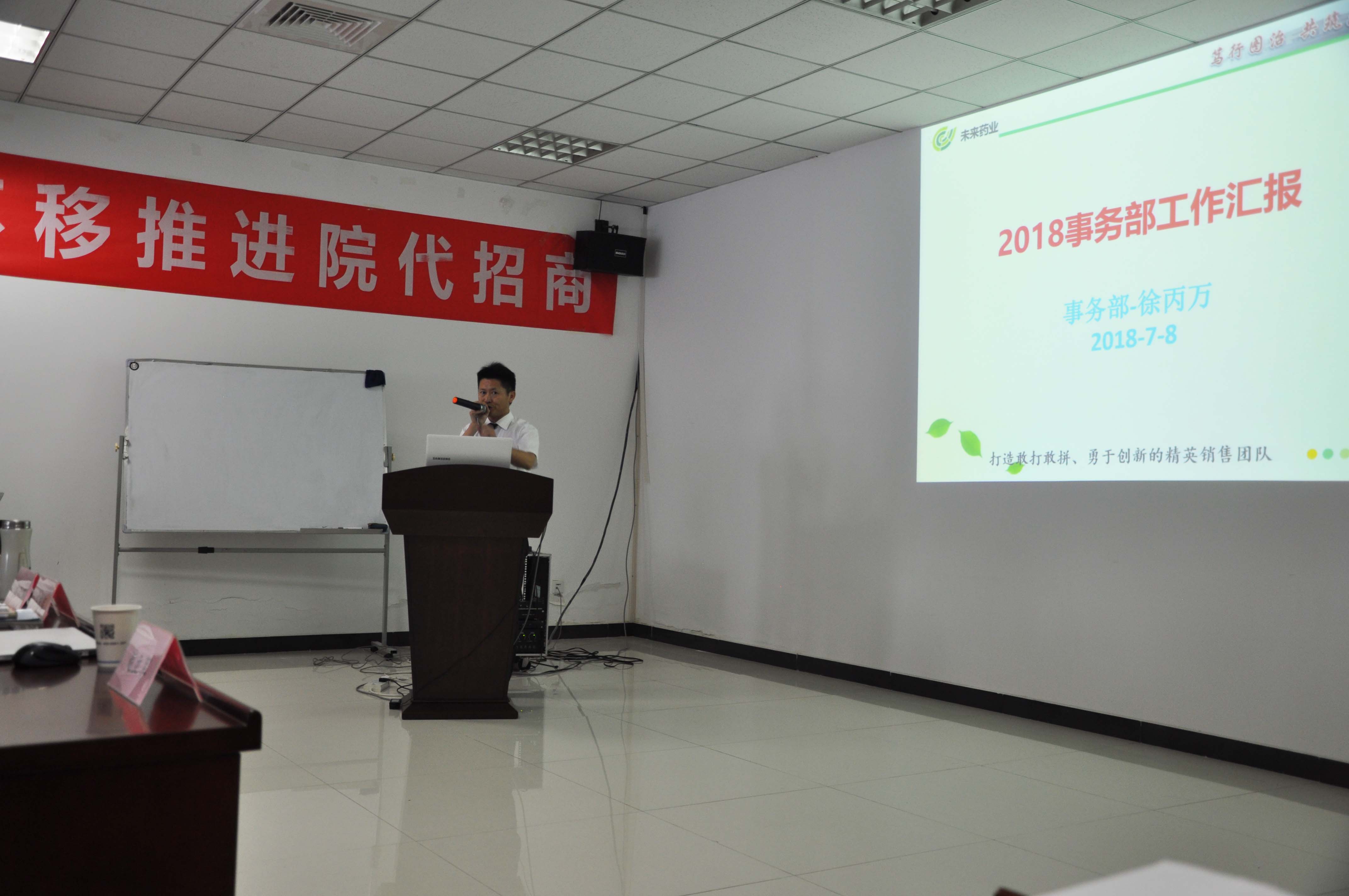 政府事务部徐丙万总监就上半年的招标情况和全国两票制进展等进行了汇报。从国家政策层面分析了国家医保局建立等医药行业动态产生的影响以及未来的发展方向,并对下半年的重点工作进行了安排。
